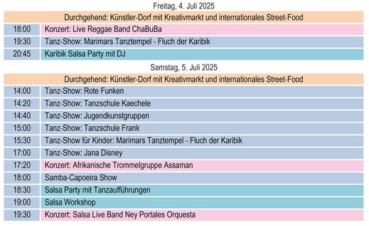 Im Programm Shows und Konzerte, Reggae, Samba & Salsa.